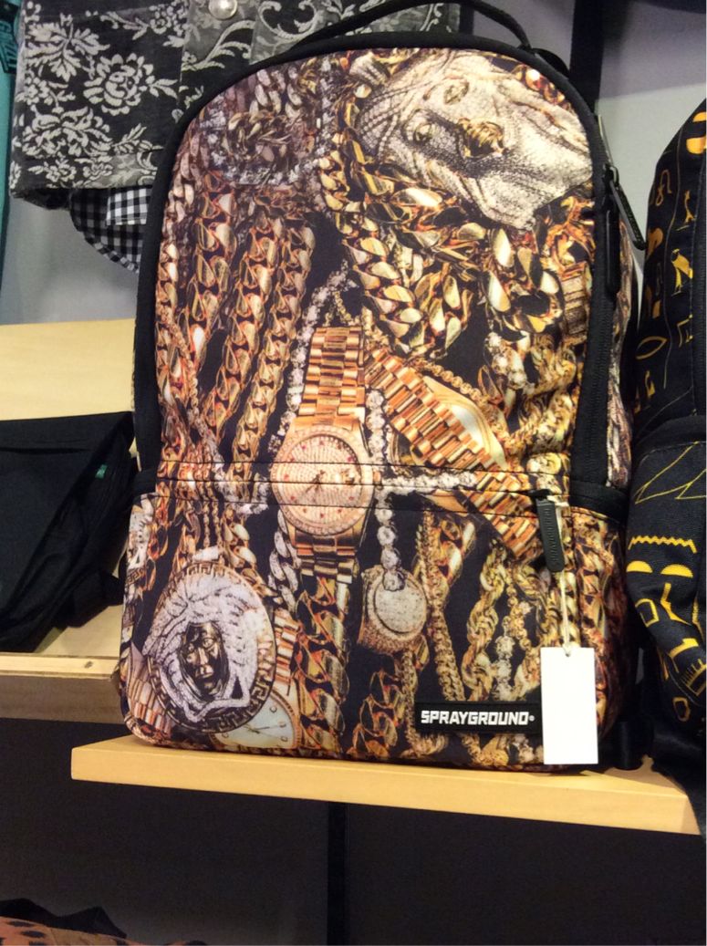 ジーザスやダイヤの時計など装飾品をリアルにデザインした、SPRAYGROUNDバックパックです。奥行きのある立体感は正にアートです。内部はメッシュポケットサングラスケースと使い易さ抜群です。SPRAY GROUND Treasure Jewels Backpack SPRAYGROUND 最新リュック